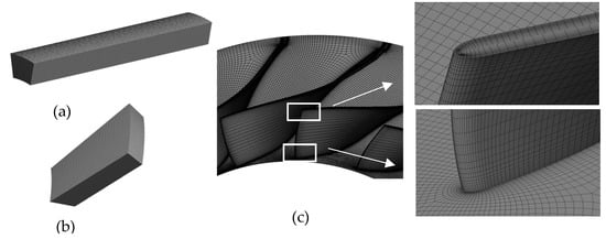 Computational mesh: (a) inlet pipe; (b) diffuser; (c) impeller.