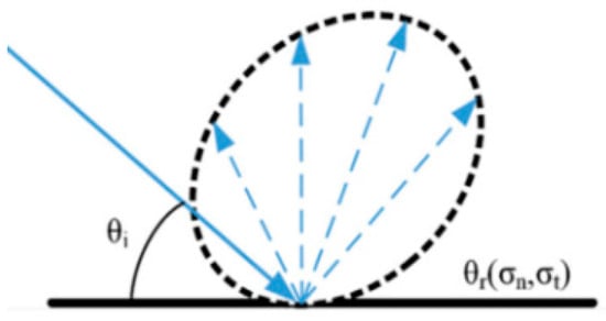 At the gas–wall interface, the Maxwell model [] is used with fully diffuse accommodation of tangential momentum and energy. The models, however, do not produce the lobular distribution in the direction of the remitted molecules observed in experiments. The Maxwell model cannot consider the influence of wall morphology, wall atom/gas molecular potential energy interaction on the scattering of non-ideal molecules, so momentum and energy adjustment coefficients are introduced to adjust empirically. However, the determination of the adjustment coefficient depends on the results of molecular beam experiments or simulation studies, resulting in greater limitations in application. Lord et al. introduced Phenomenology into the DSMC method, and a new wall reflection model, the Cercignani–Lampis–Lord (CLL) wall reflection model, was developed []. The CLL model assumes that the normal and tangential velocities during molecular reflection are independent of each other and introduces a dispersion kernel function to describe the normal and tangential velocity probabilities of the reflected molecules. The dispersion kernel function determines the relationship between the incident and impinging reflected molecules. The number flow of the impinging reflected molecules can be expressed as
