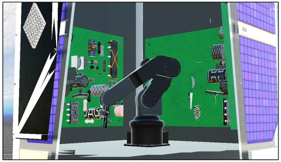 The elements of simulation-based optimization continue to improve, and there are already algorithms that could provide highly accurate work cell optimization through setup, actions, and process checks. However, the ability to capture all the necessary actions, movements of both people and robots, and—even if it could be created despite these limitations—the ability to take a full optimized process and then accurately translate it to human and robotic action carries with it an entirely different set of challenges. This area is progressing, but it will take time for the processing power and human–robot training processes to improve. Figure 4 below illustrates this by showing the full potential of work cell optimization. The “work cell” in this example is onboard an in-orbit CubeSat, where the arm has been trained using a digital twin and an orbit simulated environment (temperature swings, microgravity, g-forces from rotation, etc.) and then evolved using agent-based reinforcement learning in the simulation. The physical robotic arm uses the trained model to detect faulty components and replace them with spares. While this example is not in a factory, all of the principles hold and many mission-based activities can use elements of the digital thread to operate the mission as a work cell optimization problem.