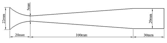 In this section, the numerical simulation of gas particle two-phase flow is carried out for the nozzle in reference [17] and the numerical calculation method of two-phase flow is verified by comparison with the experimental data. Figure 4 shows the geometry and size of the nozzle used in the experiment. ICEM software was used to draw the simulation geometric model and grid.