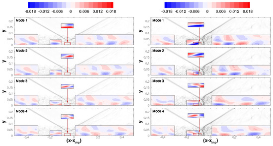 - Nichols, J.W.; Larsson, J.; Bernardini, M.; Pirozzoli, S. Stability and modal analysis of shock/boundary layer interactions. Theor. Comput. Fluid Dyn. 2017, 31, 33–50. [Google Scholar] [CrossRef]