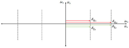 Figure 6 shows a particular case of a parallel relative eccentricity and relative inclination vectors for two followers with respect to the chief.
