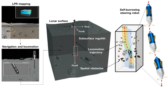 - Liu, Y.; Yuan, Z.; Li, Y.; Zhao, H.F. A Three-Dimensional Path Planning Method of Autonomous Burrowing Robot for Lunar Subsurface Exploration. In Proceedings of the 2021 6th IEEE International Conference on Advanced Robotics and Mechatronics (ICARM), Chongqing, China, 3–5 July 2021; pp. 710–715. [Google Scholar] [CrossRef]