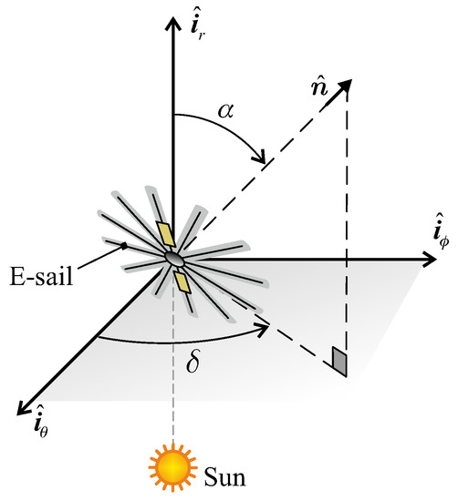 From the preceding equation, the three control (scalar) variables are, therefore, , and the E-sail-based spacecraft equations of motion in are given by [32,33]