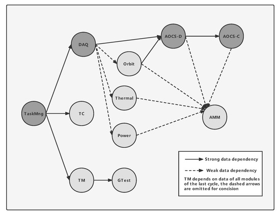 - AOCS-D: The calculation of this module requires the collected data of related sensors and the orbit data in this cycle, so it depends on DAQ and Orbit.