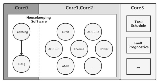 - He, J.; Xu, L.; Xu, D.; Yu, S.; Wang, K.; Chang, L. Satellite Control and Data Processing Unit Software Design Based on Multi-core Processor. In Proceedings of the 2020 International Conference on Sensing, Measurement & Data Analytics in the Era of Artificial Intelligence (ICSMD), Xi’an, China, 15–17 October 2020; pp. 352–356. [Google Scholar]