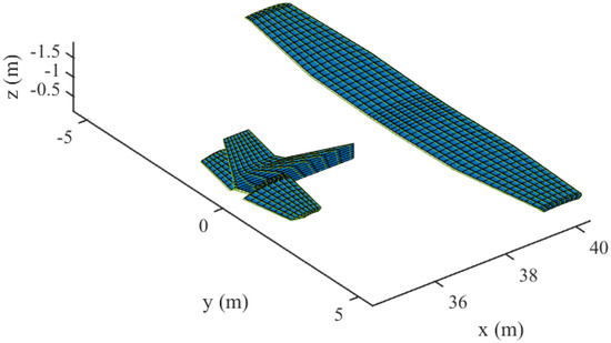 To improve the computational efficiency of numerical methods at the stage of aircraft conceptual and preliminary design, the potential flow theory has been thoroughly studied, which involves the solution of Laplace’s equation satisfied by the velocity potential [5]. The differential equation is discretized into algebraic equations by using different singularity elements. As a steady-state aerodynamic computation method established early in the 1970s, the vortex lattice method (VLM) has been verified and further developed in engineering applications [6,7,8]. It plays an important role in the calculation of the aerodynamic characteristics of fixed-wing aircraft. For the unsteady field, the doublet lattice method (DLM) has been developed, in which the doublet lattice can replace the original vortex grid in the VLM to calculate the unsteady aerodynamic forces under simple harmonic vibrations [9]. It has also become a powerful tool for aeroelastic analysis of subsonic aircraft [10]. However, as a linear method that is limited to simple motions with small deformations along the normal direction of each wing panel, the DLM cannot deal with the aircraft with complex geometric shapes, large deformations, or irregular motion states. There have been other unsteady-state aerodynamic computation methods developed, for instance the strip theory [11], which also has similar limitations due to the simplification of the modeling.