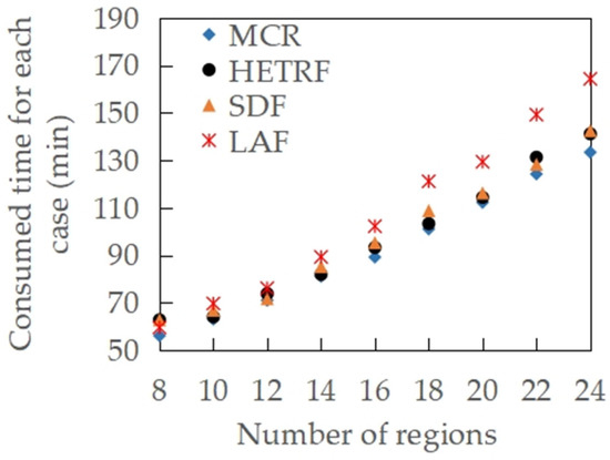 Path Planning of Multiple Unmanned Aerial Vehicles Covering Multiple Regions Based on Minimum Consumption Ratio