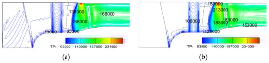 Isoline of the total pressure for 11D: (a) distorted; (b) clean.