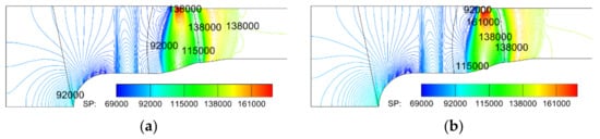 Isoline of the static pressure for 11D: (a) distorted; (b) clean.