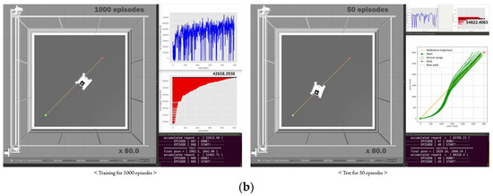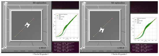 The second experiment was performed to verify the reliability of the motion planner using the DQN, and the results were compared with those obtained from a conventional control method. In this paper, among various linear path-tracking methods, the PID Path Follower was employed as a comparison group thanks to its reliable control performance for a linear function, such as constant inputs.