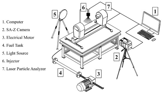 In the experiments, the spray images of the gelled fuels were captured by a FASTCAM SA-Z high-speed camera from Photron, Japan, with a resolution of 1024 × 1024 pixels and a maximum frame rate of 200 kfps. The frame rate was set to 4000 fps in the experiments. SMD, spray field particle size distribution, and other atomization data were measured by a laser particle size analyzer from the Malvern company, with a particle size measurement range of 0.1 μm~1000 μm. The sampling rate of the particle size analyzer was 10 kHz. In the experiment, the flow rate of the gelled fuel was obtained indirectly through the displacement signal of the piston in the fuel tank, and the injection pressure of the fuel was obtained through a pressure sensor. More details of the experimental setup can be found in the study by Li et al. [20].