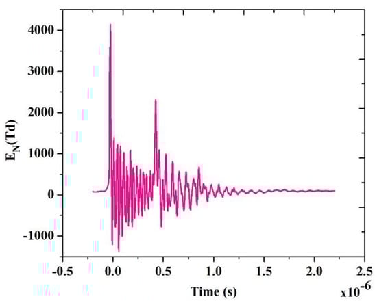 ZDPlasKin boundary conditions were set as ambient temperature and pressure, fixed EN and electron number density, and initial CH4/H2/Air composition. The simplified homogeneous model was used as in [20]. ZDPlasKin simulation was performed using the integral mean value of EN obtained from experiments, about 200 Td over 10−6 s, as shown in Figure 2. Experimental setup and EN estimation are described in [13]. The gas temperature was predicted using equations from [18]. The adiabatic gas temperature was calculated from the energy conservation equation and reallocation of electrical power Pext to electron translational degree Pelec, gas internal degree Pchem, and gas Pgas: