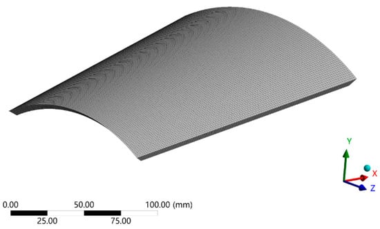 According to the structure of the hypersonic vehicle in Figure 3, the optical window is modeled with a thickness of 5 mm. When the thermal deformation of the optical window is simulated by numerical methods, the optical window is discretized through a mesh subdivision, as shown in Figure 5. The grid elements and nodes of the optical window are 61,710 and 287,668, respectively.