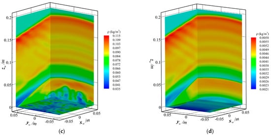 In order to further explain the flow field state above the optical window, the schlieren method can be used to display the flow field details [37]. The expression of numerical schlieren is as follows: