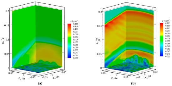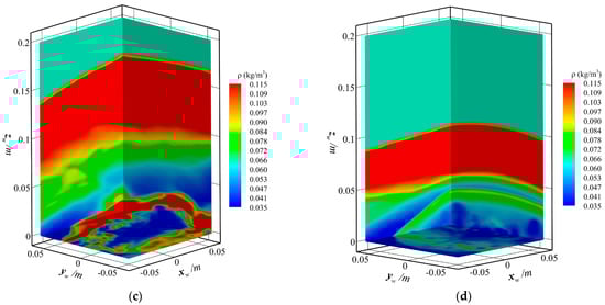 In the analysis process of gas flow, the change in vortex structure and density can reflect the fluid state, so we used two ways to analyze the turbulence state above the optical window. Firstly, the vortex structure is an intuitive reflection of the turbulent state. We use the conventional Q criterion to describe it, as shown in the Figure 9b. The change in the fluid velocity can be clearly seen through the vortex structure diagram of the Q criterion, and it also reflects the change in the turbulence state to a certain extent. It can be found that there is no vortex structure before the fluid enters the optical window, while the vortex structure gradually increases from the head to the tail of the optical window, representing the process of gradually developing from laminar flow to the turbulence.