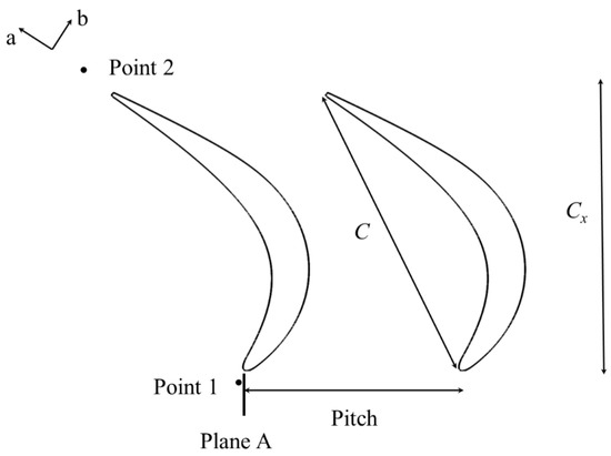 Figure 8 shows the cascade profile, Plane A observation plane, and the monitoring points used in the following sections, in which parameters such as chord length, axial chord length, and grid distance are indicated. In the figure, Plane A is an XZ plane whose range of flow direction length and radial height is larger than the existing range of the leading-edge vortex system, so this plane is selected for research.