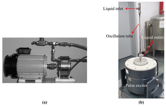 To improve the pulsating performance, Bazarov [31] argued that the velocity of liquid in the oscillation tube should not be greater than 12 m/s and the length of this tube should be less than 1/10 of the length of the pressure wave of the excited frequency in the liquid. Therefore, the size of the oscillation tube can be designed according to the flow rate and the pulsation frequency required for the experiment, as shown in Figure 4b.