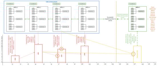 Every organization has a set of conditions or resources (personnel, equipment, procedures, etc.) necessary for it to achieve its goal of conducting business in the first place. The goal is to provide services or products to users. Those conditions, i.e., organizational indicators are the first front in successfully completing the service or product for users. Any task to be completed needs to fulfil certain set of conditions, otherwise, it cannot be completed. Every occurrence (adverse event) is mostly related to those initially established values of organizational indicators. Any breach of that value (either if it is too low or too high, or there is a lack of it) will impact the outcome of the desired task. The number of external causes also affects the desired outcome (goal of the organization). However, every organization sets procedures regarding changes or emergencies in the organization (in manuals such as Organization’s Management Manual, Operations Manual, Standard Operating Procedures, Maintenance Manual, etc.) to ensure the successful completion of tasks and ultimately successfully achieved goals. Those procedures are tested and proven to be successful. Otherwise, the organization would not be certified to perform its services; hence, if we assume that keeping organizational indicators and procedures (which include management of change and emergency preparedness) in designated values known to produce successful outcomes, the outcomes (goals) would be achieved. We can detect which area event is bound to occur, based on past (historical) data of an organization, by using predictive analysis to predict safety performance indicators, i.e., future adverse events. By using causal modeling, it is possible to determine the causes of past events. Those same causes can help mitigate the future predicted events, hence, giving the possibility to react in advance and mitigate the areas of concern (Figure 9). The link between causation and prediction is that they both refer to an event caused by a set of factors but at different time points (past and future).
