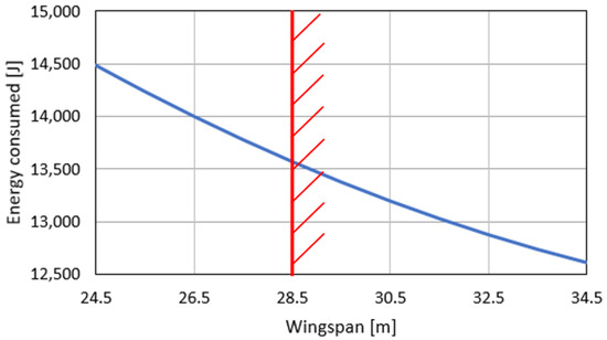 For the wing, the maximum lift coefficient was calculated using Raymer [18] sizing methods. For the wing area S, the wingspan b and the taper ratio , the initial values were defined before the execution of the sizing iterations. In the following design process, S was obtained through the iterating mass estimation, while b and were chosen values. With the lift coefficients of the selected airfoils at different positions from the reference aircraft, the maximum lift coefficient was obtained. In contrast to current generation aircraft, the wing is not used to store fuel and is, therefore, not subjected to passive stress relief.