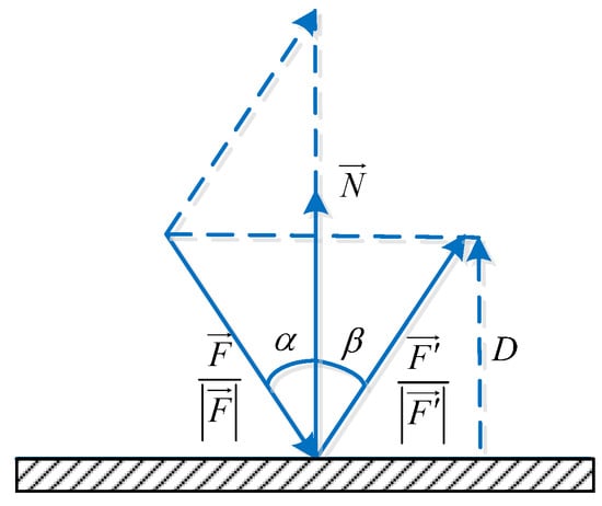 The seed airflow flows in the flow channel. It is in contact with the wall surface of the flow channel. For the convenience of calculation, the calculation is carried out in the form of total reflection, as shown in Figure 3. The direction of the reflected airflow is . Then, the calculation is performed according to the incident direction and the normal vector of the specular reflection point. According to the characteristics of total reflection, the incident angle is equal to the reflection angle . By translating to the starting point of , the calculation expression of the reflection direction can be obtained: