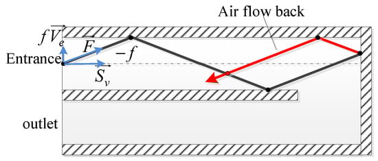 Basic assumptions: A “strip” of airflow flows forward at an initial seed flow rate of . The current flow velocity of fluid microelements is . The velocity and flow direction resistance of the fluid element is simplified to a linear weighted resistance coefficient of f, then the flow of the “strip” airflow in the flow path is expressed as . In addition, when the airflow passes through the wall of the flow channel, the flow rate of the micro-element is reversed.