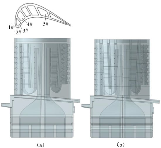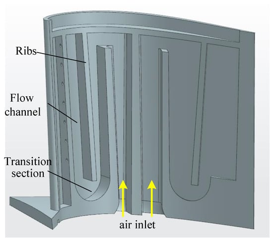 Turbine blades are the key components of aero-engines, which must work under high-speed, high-temperature, and high-pressure conditions for a long amount of time. The gas temperature in front of a turbine is much higher than the temperature tolerance range of the materials commonly used for blades []. To ensure the blades’ safe operation and endurance, a composite cooling technology is generally used in the structural design to cool the blades [,,,]. The design quality and efficiency of the cooling technology of the blades have an impact on the thrust-weight ratio and development cycle of aero-engines.