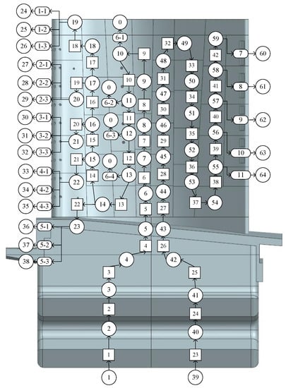 According to the process of the blade’s flow heat PNC, the flow network data extraction scheme of the composite cooling turbine blade is given, as shown in Figure 2.