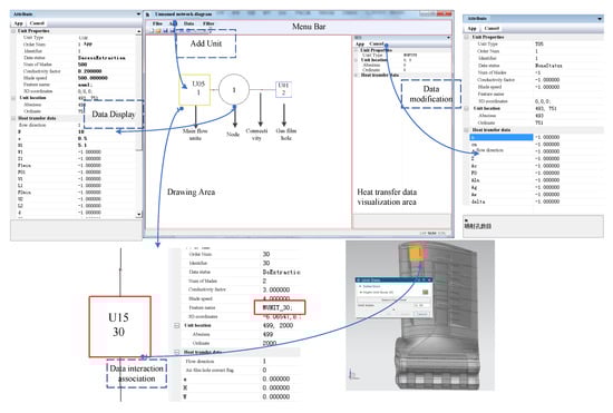 Combined with the functional attribute data required by the PNC of functional elements, a specific algorithm is used to extract the data of the geometric flowing unit, which is required in the blade’s PNC. The data are configured into each functional element of the drawn flow heat pipe-network.