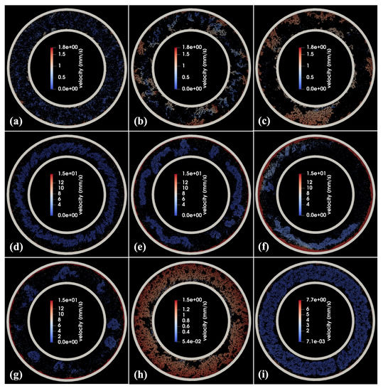 - Particles agglomerate and quickly form big blocks between the inner and outer walls, which are impacted by a few scattered particles (see Figure 4i).