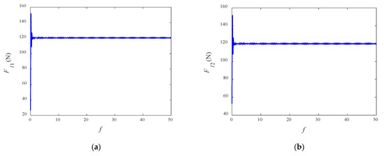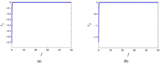 Taking as an example, it can be obtained that , , , and when the system is stable by substituting the parameters in Equation (29) into Equations (18), (19), (21) and (22). The analysis results are verified by simulation in Section 5.1.