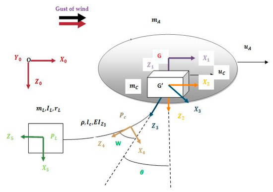 It should be noted that the kinetic energy of the whole system is made up of that of the airship (TA), the cuboid (TC), the payload (TL), and the flexible cable.