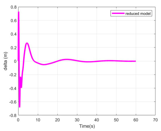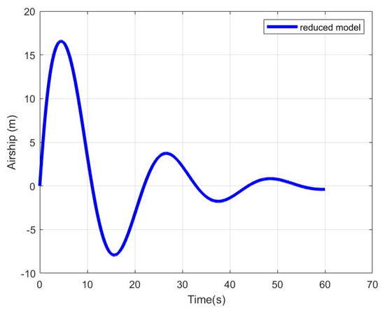 According to Figure 11, the airship reaches slowly the desired position (origin). The control vector succeeds in stabilizing the system. The motion of the cuboid, the oscillation angle θ, and the generalized deformation of the cable δ tend to zero.(Figure 12, Figure 13 and Figure 14).