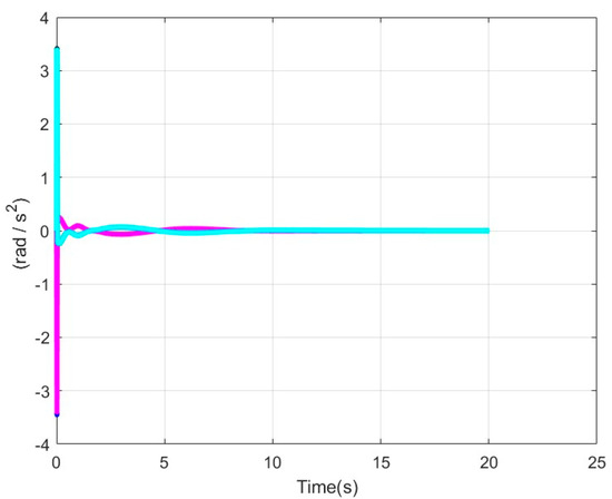 The performance of the proposed control scheme is good. Our goal thereafter is to highlight the behavior of the eight winches driving the cuboid. We show in Figure 15 the detail of all the simulation of the accelerations of each winch.