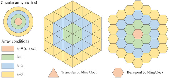 Lattice structure constructed with the circular array method. (Note: the triangle type does not have the centered cell of N = 0.).