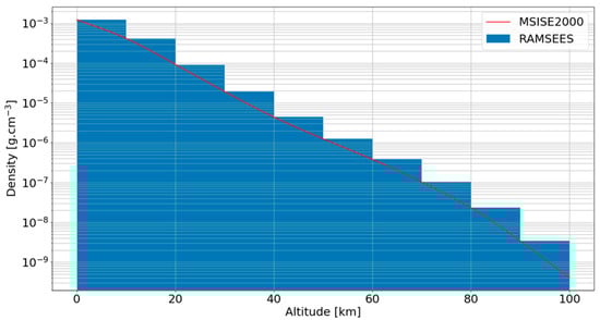In Figure 6, we plot the density of the atmosphere according to RAMSEES and to MSISE2000.
