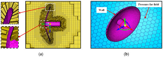 The 3D model of the reentry vehicle was established in Figure 4 with the initial structural parameters in Table 1. The unstructured hexagonal surface mesh and hybrid volume mesh were used for grid division, and the boundary layer mesh the near wall of the vehicle was encrypted, as shown in Figure 5a. The vehicle surface was set as a constant temperature wall without slip. The pressure far field was selected as the boundary condition [9], as shown in Figure 5b. The freestream condition is presented in Table 2.
