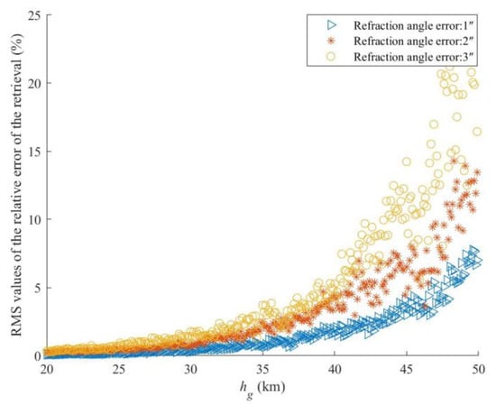 where is a small value that can be neglected. In (16), the error of the apparent height is mainly contributed by the uncertainty of the satellite position and the refraction angle error, which will lead to the error of the retrieval.