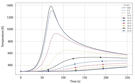 Finally, Figure A3 shows internal temperature profiles shortly after the heating begins (2 ), when the heating stops (60 ), shortly after the heating stops ( ) at the very end of the calculation (120 ), and some intermediate values.