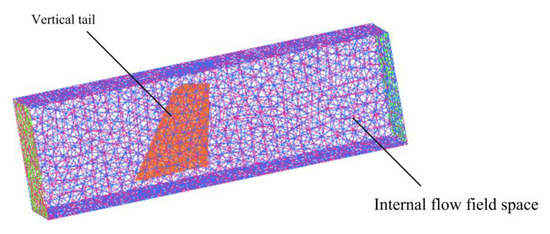 The wall surface of the vertical tail, the internal flow field space and the external flow field space have been processed through high-precision unstructured grid technology. The grid size of different areas of the vertical tail is shown in Table 2, where the minimum grid size for wall areas is determined based on the global minimum size. The mesh quality of the bottom profile, leading edge, trailing edge, and top surface edge of the vertical tail has been improved. The global minimum size is adopted to improve the mesh generation quality of small geometric features in the whole flow field space.