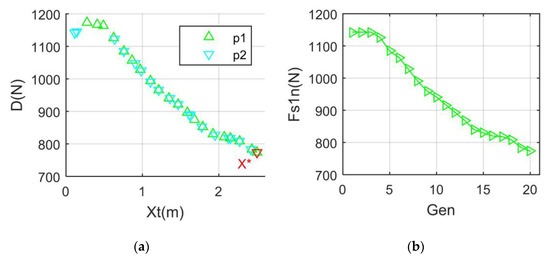 Aerodynamic optimization: Xn = 0 m; V∞ = 125.8 m/s; (a) Drag index; (b) Min Fs1.
