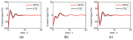 The control inputs of the PPTC and FTC. (a) Case 1; (b) Case 2; (c) Case 3.