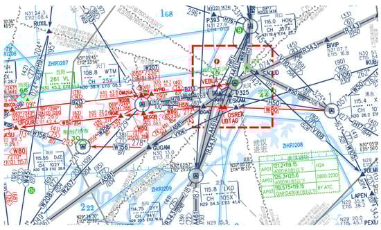- The corresponding airspace structure of the sector, including the distribution of routes, restricted areas, danger zones, restricted areas segregated by military activities, the distribution of waiting areas, and the locations of key navigation stations, position reporting points, and route intersections.