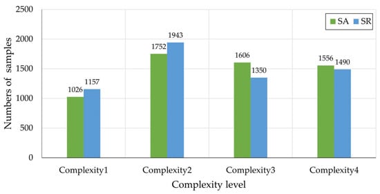 - Complexity Tag Set: Present machine learning-based traffic complexity assessment research uses two primary labeling strategies: one is based on the actual split or merger state of the sector to reflect the complexity of sector operation [53], which can be obtained automatically from historical control data records, and the other is based on a manually collected CL, which is traditionally used as a 3-level label (low, medium, high) [34,36,37,46]. Although better results have been achieved in terms of assessment accuracy, this 3-level form provides limited information in actual control scenarios, making it challenging to provide decisionmakers with more detailed information as well as being an overly simplistic and crude approach. Due to the increase in existing traffic demand, the airspace sector frequently has abnormally high traffic complexity for the majority of the time. However, the traffic complexity does not typically reach the maximum level without exceeding the controller’s workload guarantee, so the optimal position for such a state of traffic complexity should be between medium and high. Consequently, a modest increase in CL level numbers may have a greater potential value in practical applications.