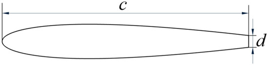 After designing the wavy leading edges, the blunt-trailing-edge airfoils studied in this paper were directly cut from the baseline airfoil and wavy A10W10 airfoil. When 15% is cut off from the trailing edge, the airfoil chord length becomes 127.5 mm, and the thickness of the blunt trailing edge is d = 6.1576 mm, as shown in Figure 2.