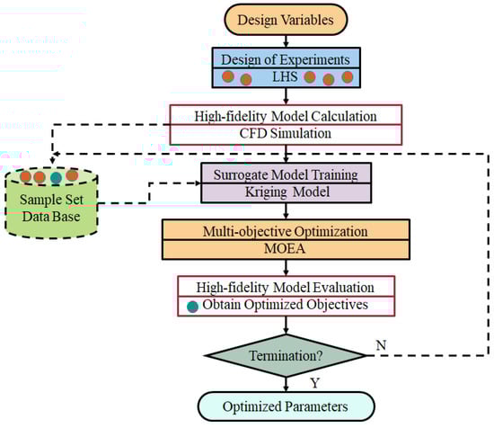 - Add a new set of samples to the database, including the optimization solutions of the previous generation, to enrich the model and build a better surrogate model. Then, verify the results of the optimization solutions using the high-fidelity numerical method in order to ensure the accuracy of the new surrogate model.
