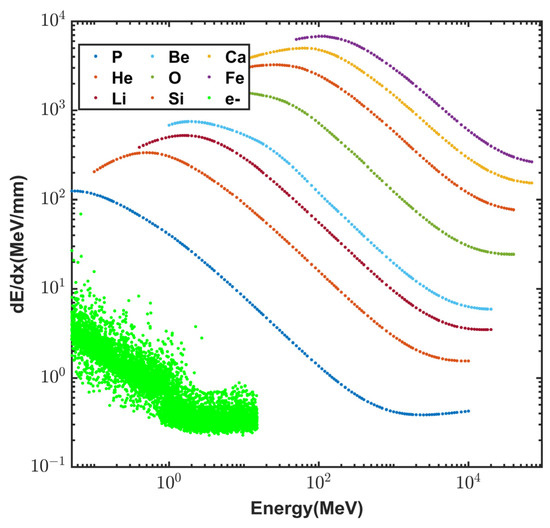 The basic principle of the ΔE·E method is a classical one based on the theoretical formula of particle–matter interaction. When a particle with energy E passes through a sensor with a thickness of Δx, the energy loss is ΔE, which can be expressed by the following equation [35].