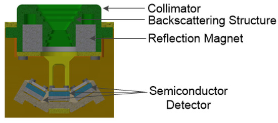 Each direction of the medium-energy proton probe is composed of two anti-coincidence stacked semiconductor detectors, which can not only achieve the accurate measurement of the medium-energy proton energy spectrum but also shield the interference of other high-energy particles. A deflection magnet is used in the medium-energy proton probe to deflect the incident medium-energy electrons. As a result, the incident medium-energy electrons cannot enter the sensor, thereby improving the measurement precision of the medium-energy protons. The magnetic field strength is selected as 3000 Gs, and the contamination of electrons below 1 MeV can be reduced to less than 1% [43].