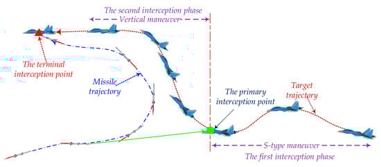 As shown in Figure 1, it is clear that the target maneuver modes consist of two phrases during interception. In the first phrase, the target adopts the S-type maneuver mode to avoid the missile. As the missile approaches the target, the target makes a vertical maneuver suddenly to avoid being intercepted. It is obvious, according to the real-time battlefield, that the target can adopt various maneuver modes to avoid being intercepted. Thus, this will become a great test for the interceptor, because the current interceptor’s control and guidance parameters are fixed. In these conditions, the interceptor’s performance is comparatively poor, when facing the rapidly changing battlefield. Thus, to improve the adaptive capability of the missile, the paper introduces the deep neural network to the control system and derives the corresponding adaptive guidance law.