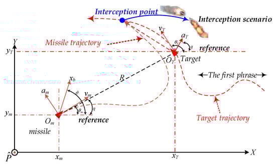 Before establishing the engagement kinematics, the paper will introduce the interception scenario where the target has different maneuver modes. The interception scenario is shown in Figure 1.